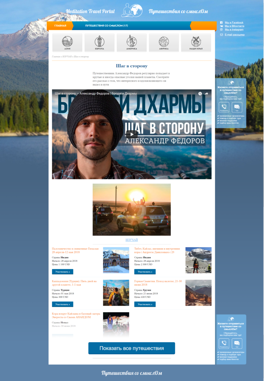 Создали концепцию и разработали сайт-портал путешествий Meditation.Travel.