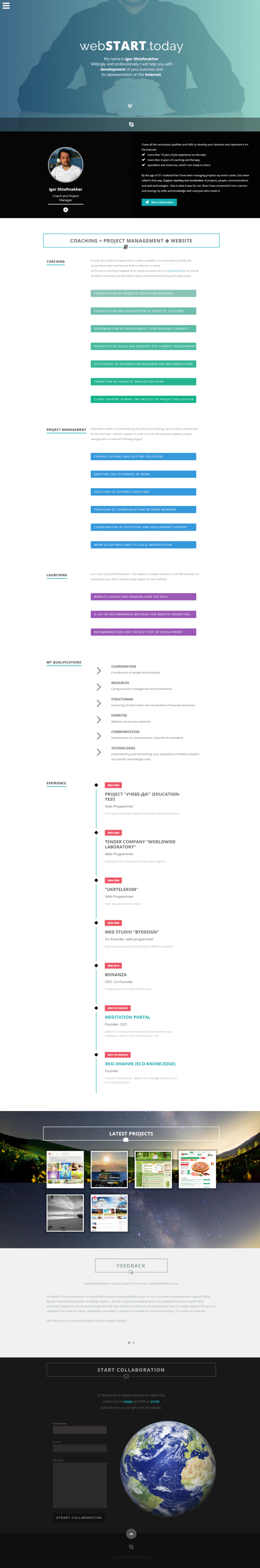 Это английская версия начального сайта-визитки этого проекта — webSTART.today